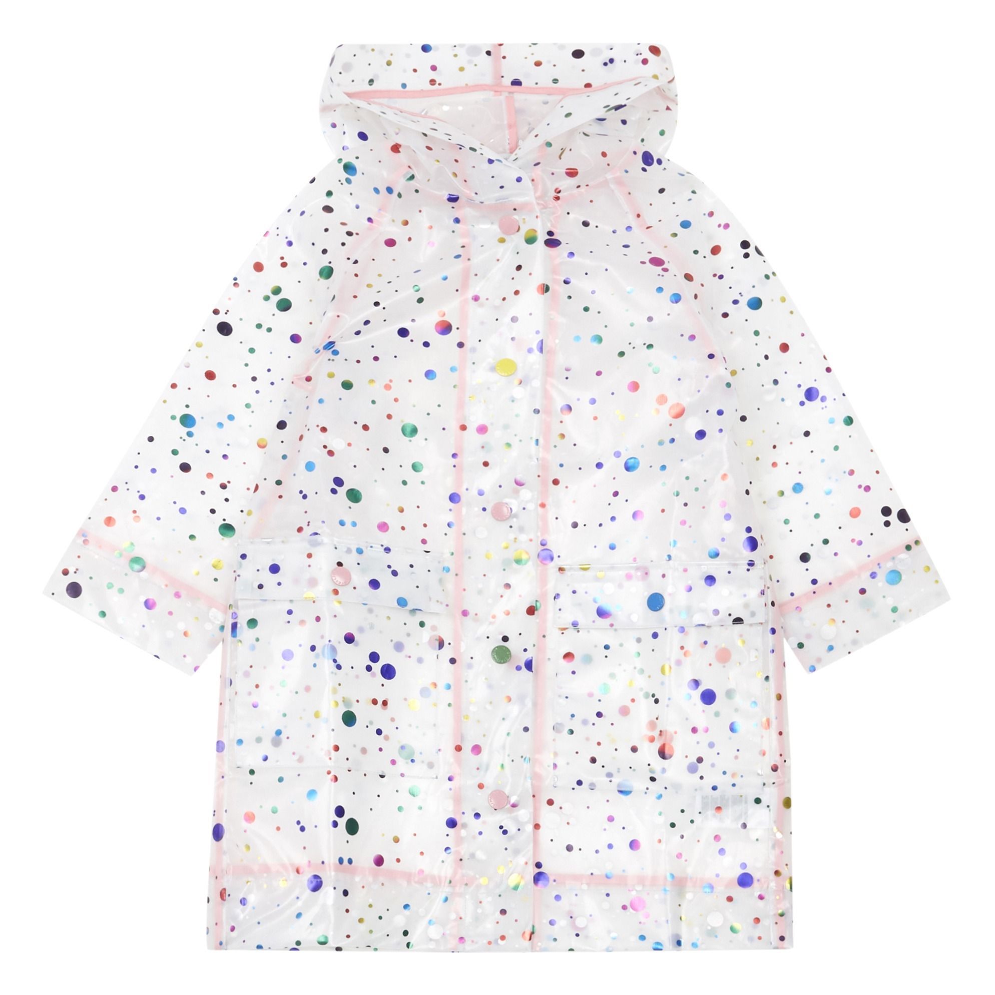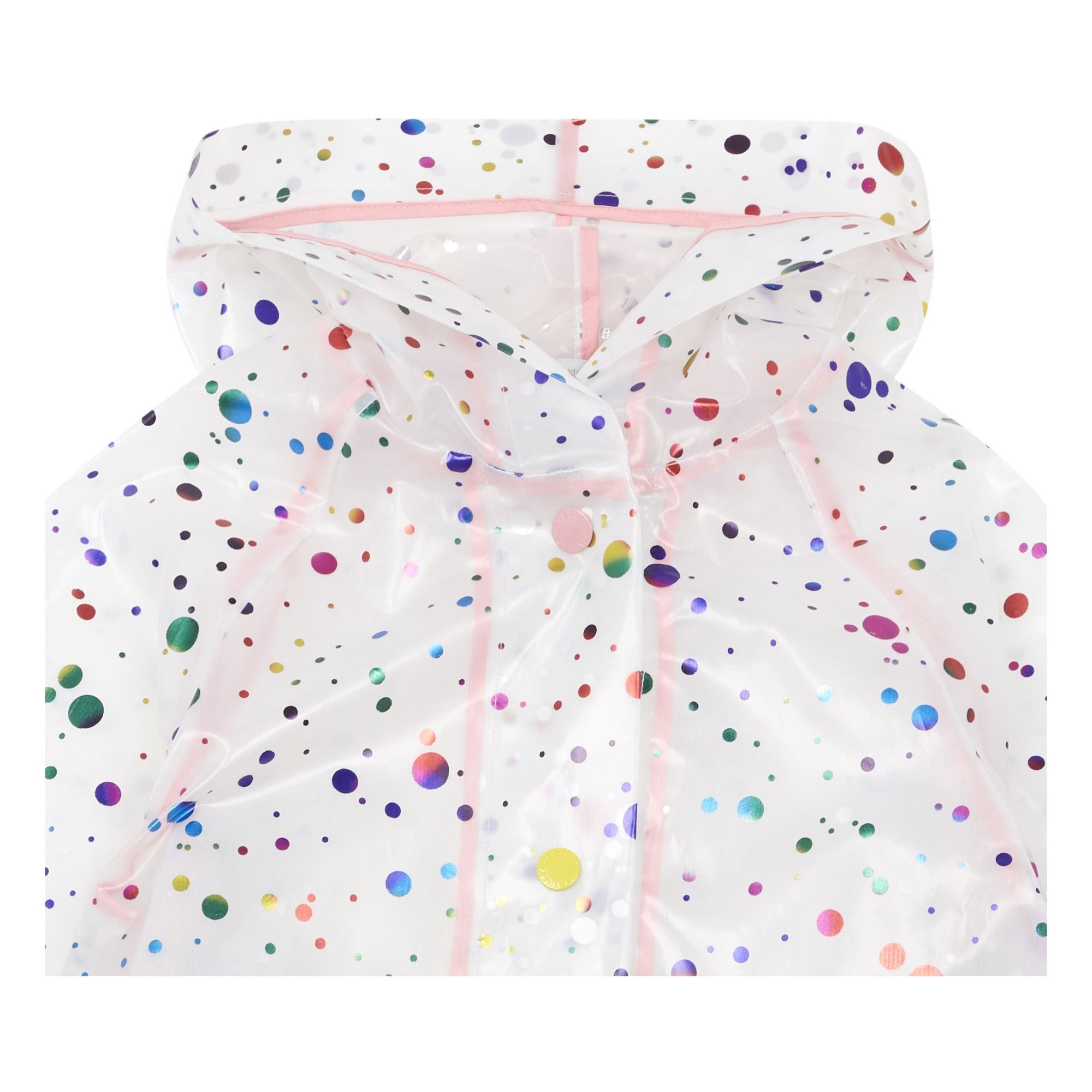 - Détails : Motif pois, à capuche, Manches longues raglan, Poches à rabat boutonnées, Boutons pression, Boutons fantaisie, Transparence, Irisée, Biais contrastés, Déperlant